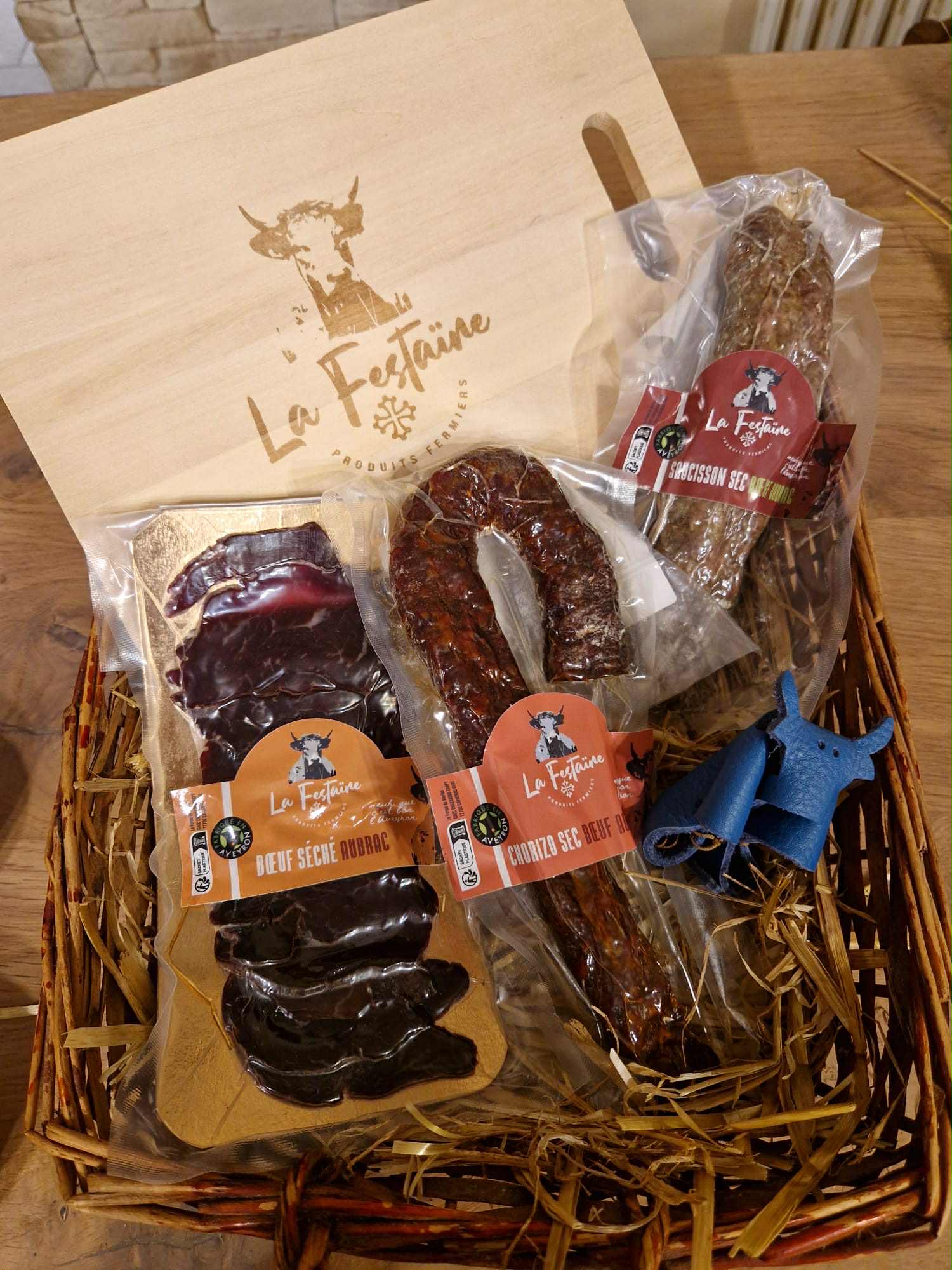 Envie de gâter un amateur de bonnes choses ? Le Kit du Bon Vivant de La Festaïre est le cadeau idéal : saucisson, chorizo, bœuf séché et une planche de charcuterie à partager (ou pas, on ne jugera pas). Un véritable kit de survie pour tous ceux qui ne savent pas où commencer (ni où finir) quand il s’agit de bonnes choses à grignoter.
